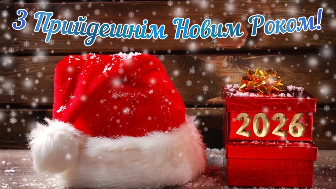 З Новим роком! Хай цей рік стане роком перемоги, відновлення і нових можливостей. Нехай у кожній оселі панує мир, у серцях живе любов, а кожен день приносить радість і впевненість у майбутньому. Віримо у краще та разом будуємо щасливу Україну!