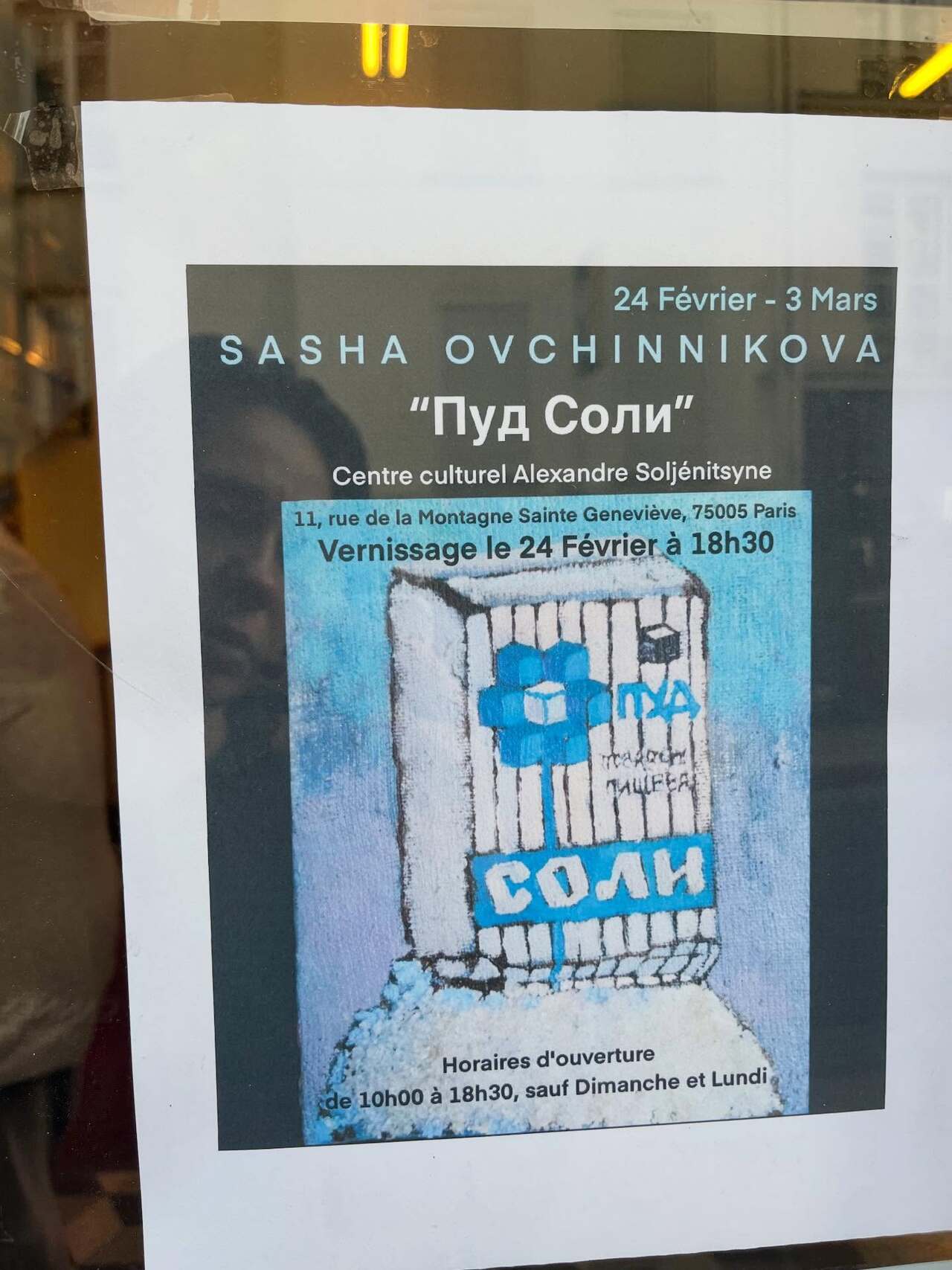 Російська художниця Саша Овчіннікова з Санкт-Петербурга використала знакове зображення упаковки солі, яку добувало підприємство Артемсіль на Донеччині, для промо своєї виставки у Парижі.