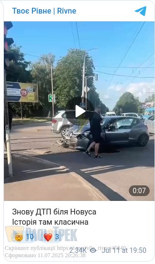 Одна автівка вилетіла на тротуар: ДТП сталася неподалік Новуса (ВІДЕО)