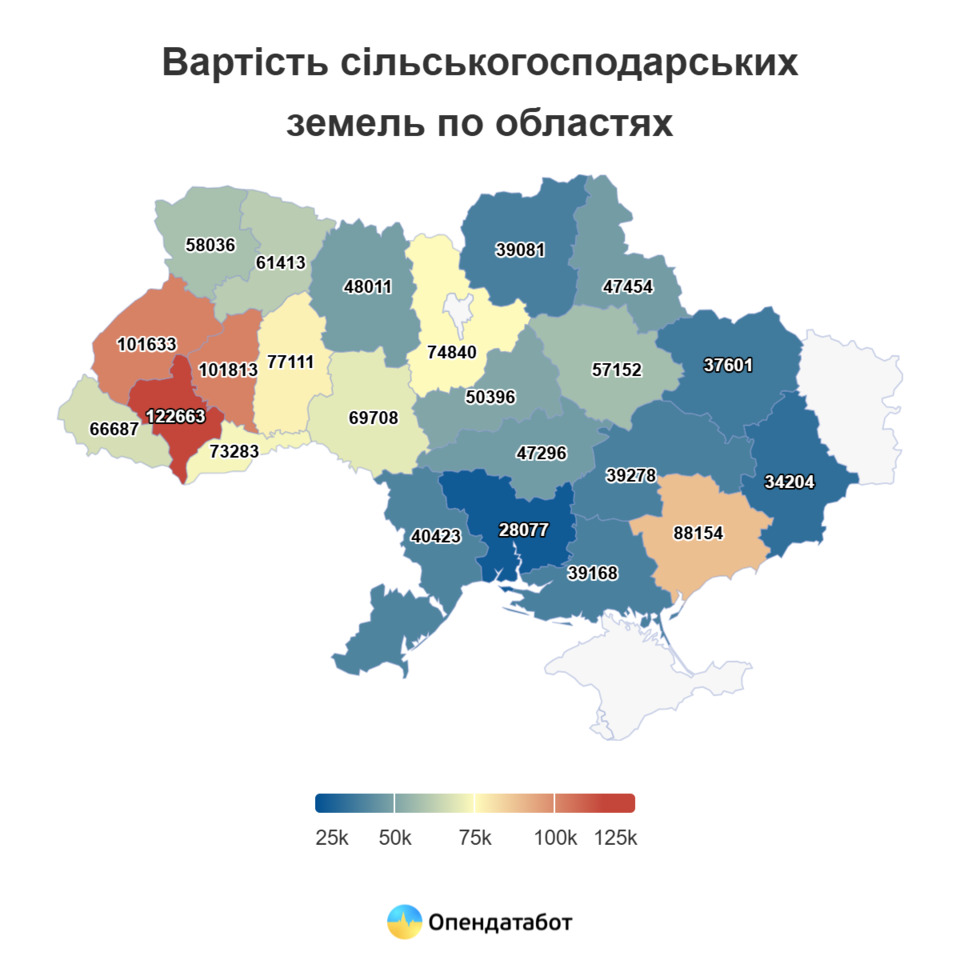 В нашому краї ціна за гектар в січні становила понад 61-ну тисячу гривень.