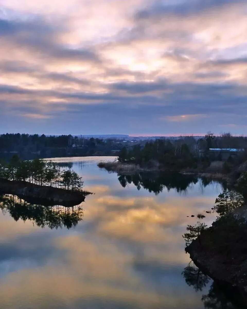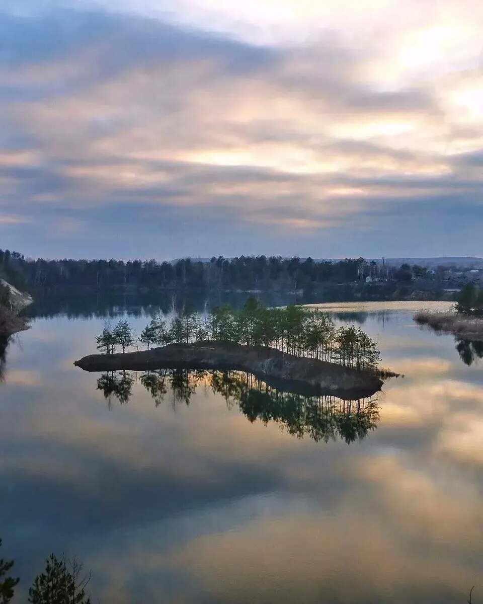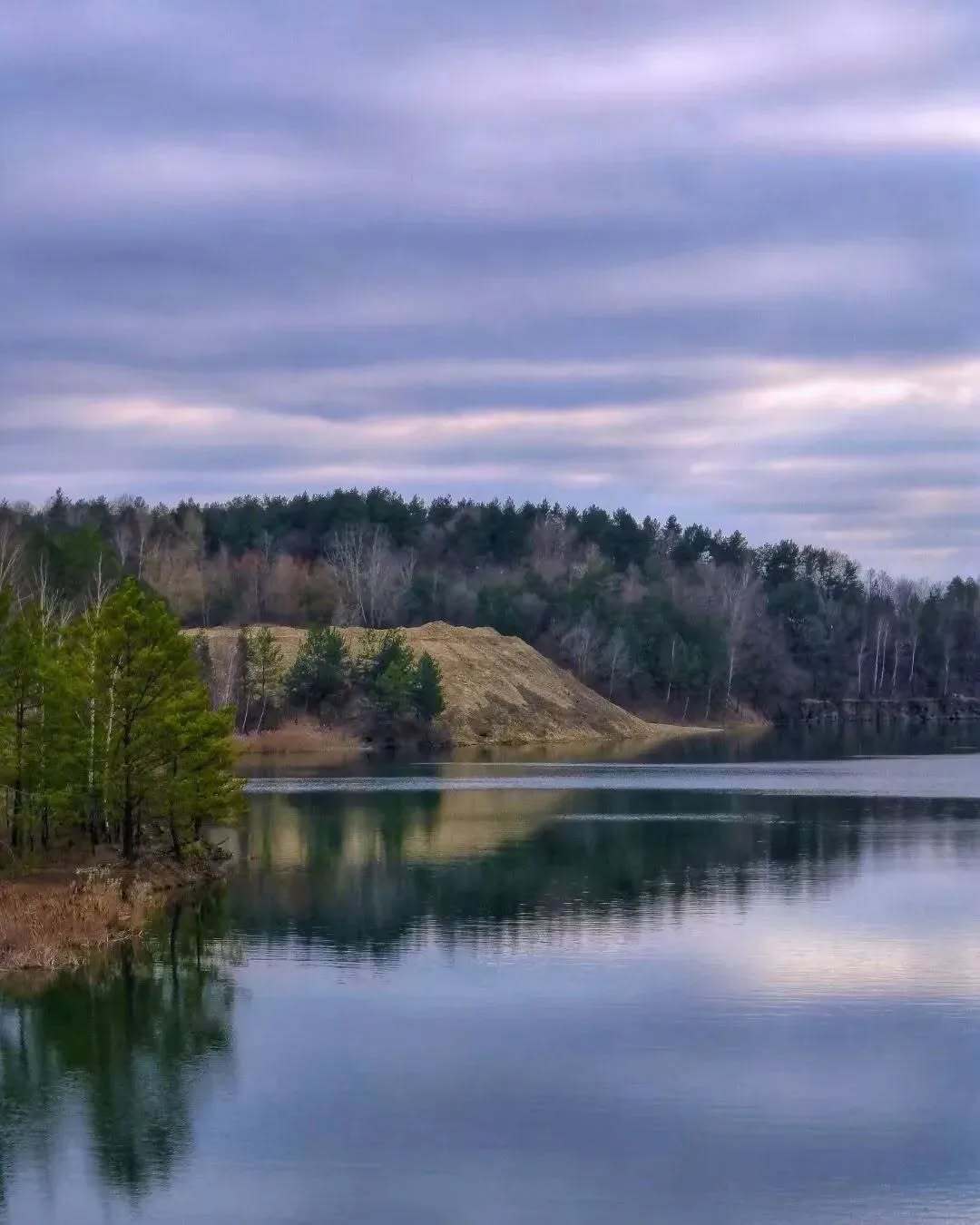 - Озеро у кар’єрі з чистою бірюзовою водою, піщані пляжі.