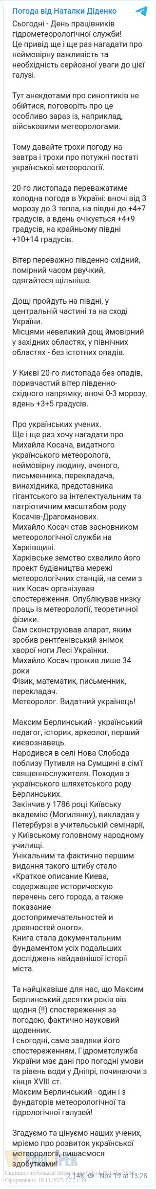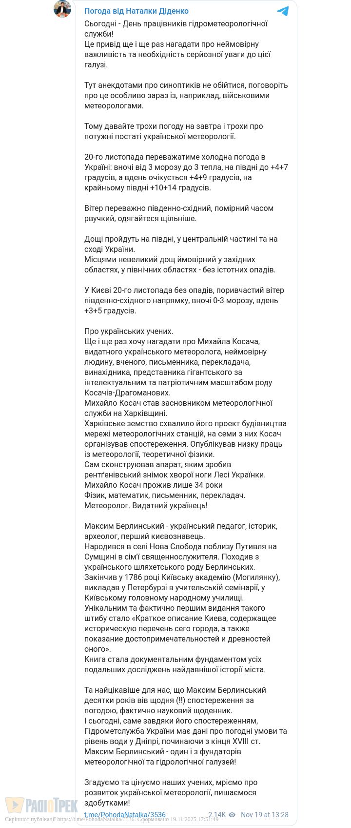 Завтра, 20 листопада, в Україні переважатиме холодна погода.