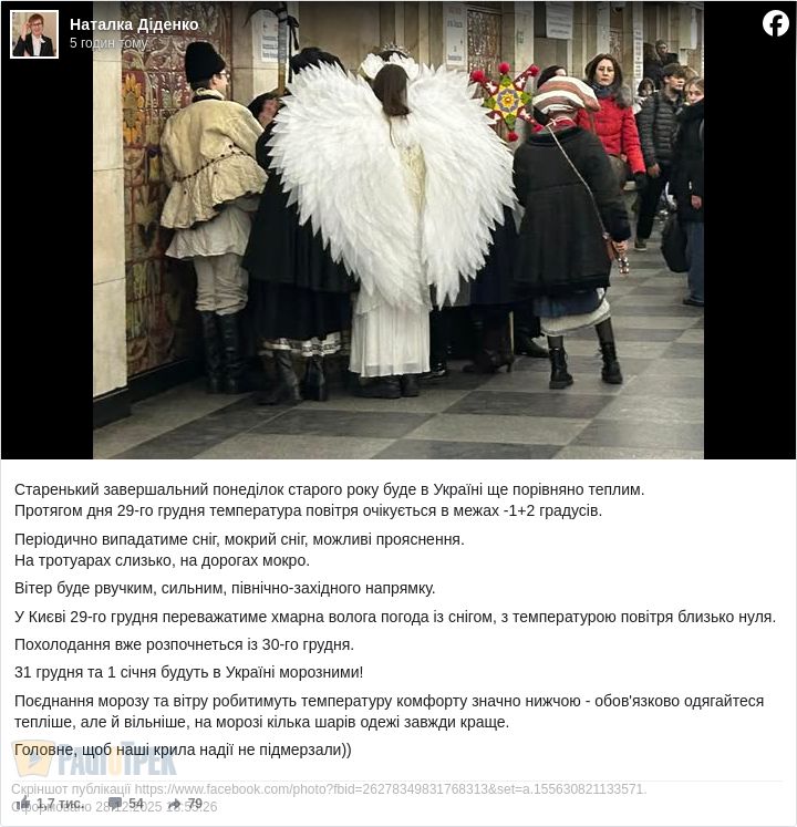 В останні дні 2025 року в Україну прийде похолодання. Про це повідомила синоптик Наталка Діденко.