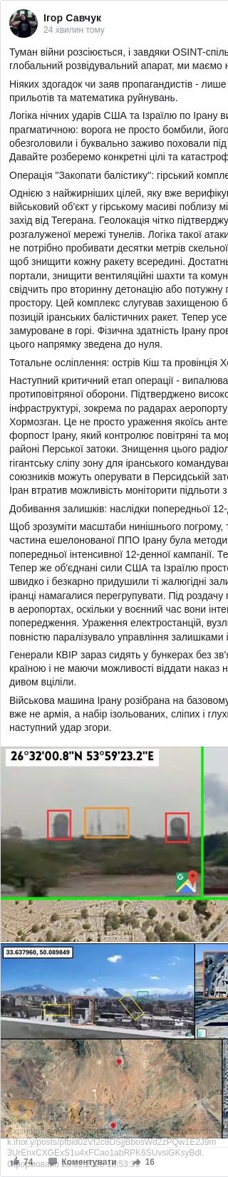 Вже стає очевидно, що спільна військова кампанія США та Ізраїлю проти Ірану – це математично вивірене знищення військово-промислового потенціалу цілої держави, - пише Ігор Савчук.
