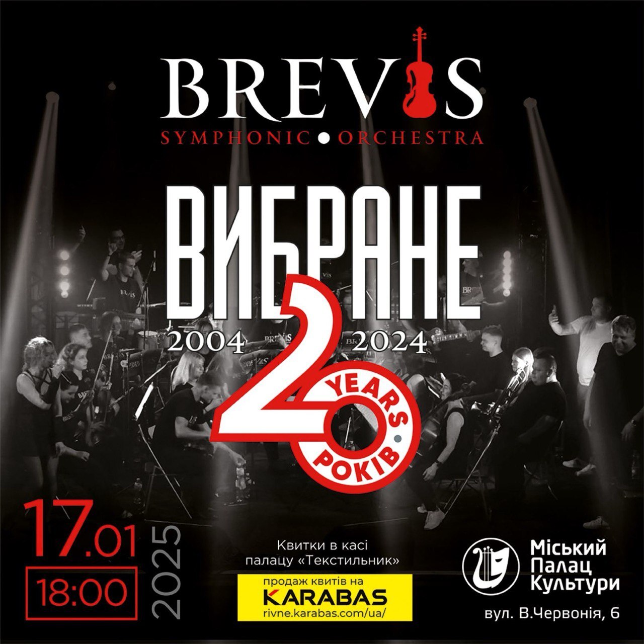 17 січня о 18:00 у Міському Палаці культури «Текстильник» відбудеться святковий концерт з нагоди 20-річчя «BREVIS». Цей вечір обіцяє стати справжнім музичним святом, де симфонічне звучання зустрінеться з драйвом року.