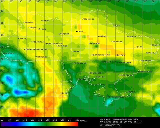 Середа, 10 вересня, буде більш сонячною, але грози залишаться на півдні та заході. Повітря прогріється до +23°...+27°. На півдні України та на Закарпатті очікується +20+24 градуси.