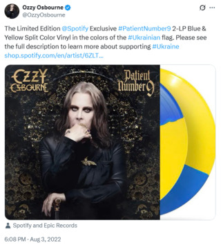 Згодом у серпні того ж року він присвятив випуск свого нового альбому Patient Number 9 Україні. Обкладинку доповнили синьо-жовтими кольорами та важливим меседжем.