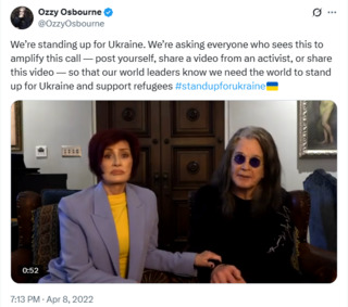 Він не залишився осторонь, коли Росія здійснила повномасштабне вторгнення. У квітні 2022 року разом з дружиною Шерон оголосив про допомогу українським біженцям і закликав світ долучатися.