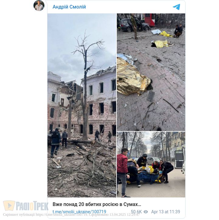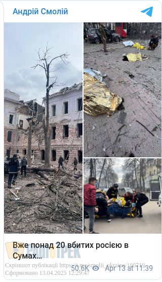 Ворожі ракети вдарили по звичайній міській вулиці, по звичайному життю: будинки, освітні заклади, машини на вулиці… І це в день, коли люди йдуть до церков: Вербна неділя, свято Входу Господнього в Єрусалим.