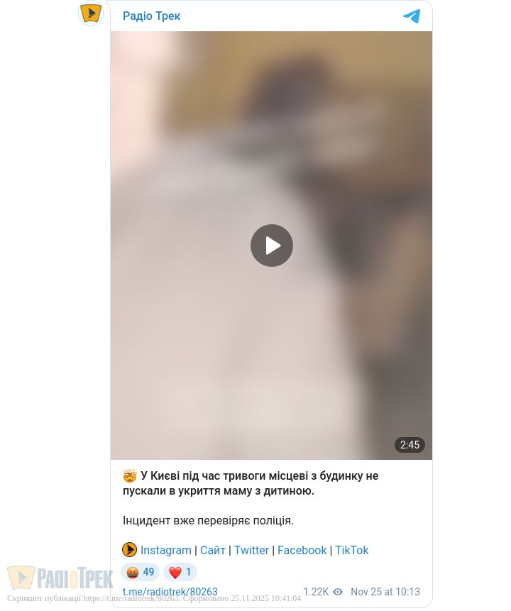 Правоохоронці Києва кажуть, що побачили допис у соцмережах про те, що працівниця нібито не впускала мешканців у частину сховища.