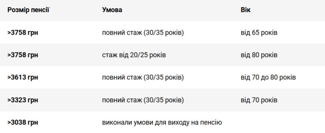 Про це йдеться в повідомленні Пенсійного фонду України. Наприклад, якщо вам виповнилось 65 років і ви маєте повний страховий стаж (для чоловіків це 35 років, а для жінок – 30 років), то мінімальний розмір вашої пенсії має становити від 3758 грн.