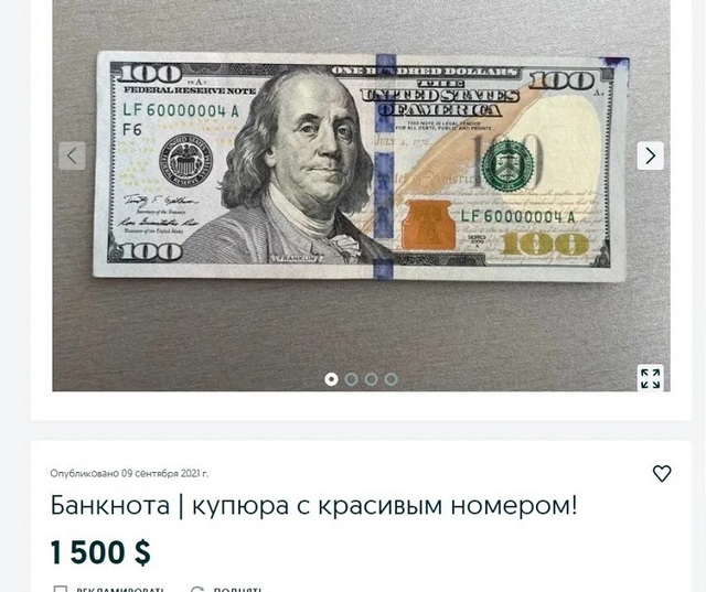 «Рідкісні 100-доларові банкноти з красивим номером. Стан банкнот - ABOUT UNCIRCLATED», - написано в описі оголошення.