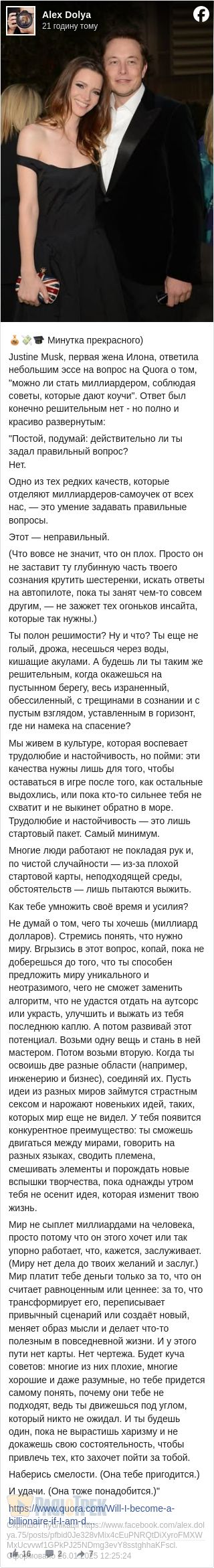 Джастін Маск написала ціле есе на ресурсі Quora, наче як відповідаючи на запитання: