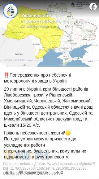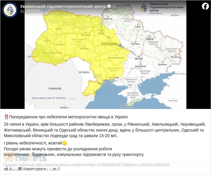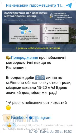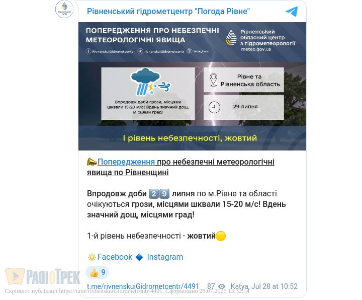 До слова, негода охопить не лише Рівненщину. За даними Українського гідрометцентру, дощі, шквали та град очікуються також у Хмельницькій, Чернівецькій, Житомирській, Вінницькій, Миколаївській та Одеській областях.