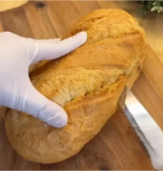 Батон розрізають навпіл.
