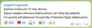 Сьогодні зранку виявили останню жертву росіян. Загалом кількість загиблих сягнула 10, повідомив міський голова Львова Андрій Садовий.