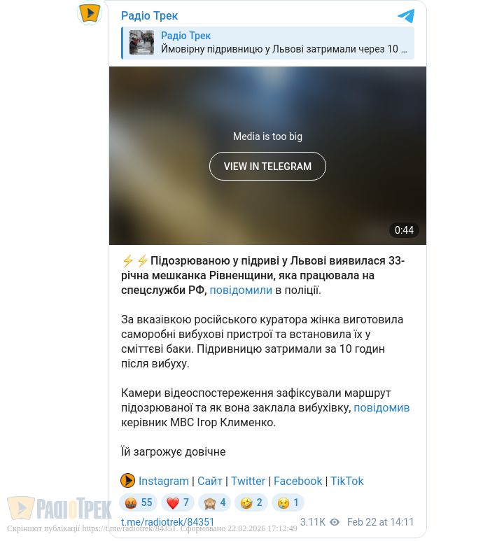 Підрив у Львові: жінка з Рівненщини діяла на замовлення РФ (ВІДЕО)