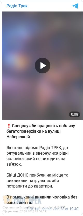 Як стало відомо Радіо ТРЕК, до рятувальників звернулися рідні, які перебувають за кордоном та повідомили, що чоловік не виходить на зв’язок.