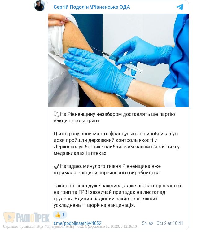 Медики наголошують, найкращий захист від тяжких ускладнень грипу та ГРВІ — щорічна вакцинація, особливо напередодні піку захворюваності, який традиційно припадає на листопад–грудень.