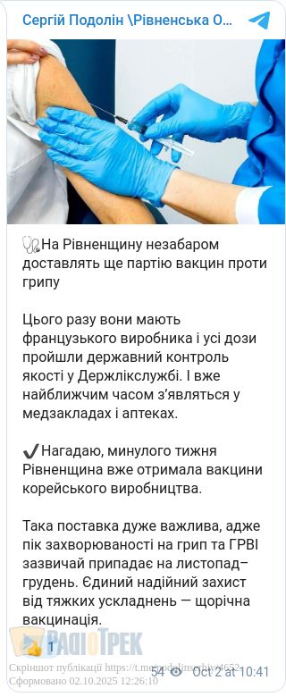 Нову партію вакцин проти грипу доставлять на Рівненщину. Найближчим часом дози французького виробництва з’являться у медзакладах і аптеках області.