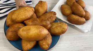 Ставимо на сильний вогонь розігріватися велику кількість олії. Щоб витрата олії була меншою, можна смажити у широкому сотейнику. Пиріжки мають у ньому плавати, як у фритюрі. Так скоринка стає хрумкою, що відрізняє ці пиріжки від звичайних смажених на сковороді або печених у духовці.