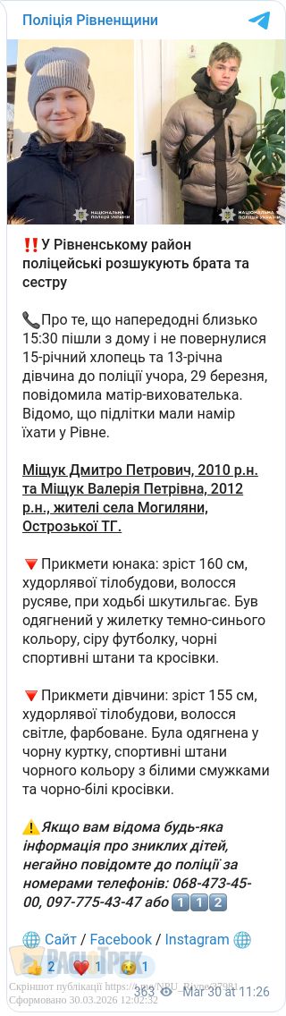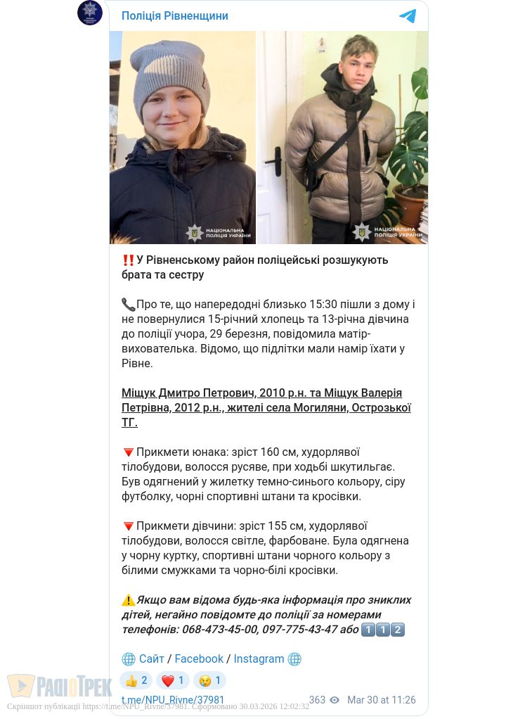 Якщо вам відома будь-яка інформація про їх місцеперебування, повідомте до поліції.