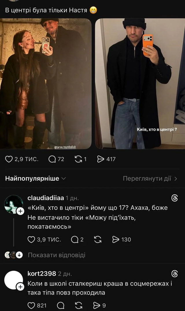Дісталося і 35-річному Цимбалюку — користувачі обговорюють його спосіб шукати компанію та публічність цієї ситуації.