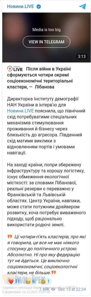 Про це розповіла директорка Інституту демографії НАН України Елла Лібанова в коментарі для Новини.LIVE.