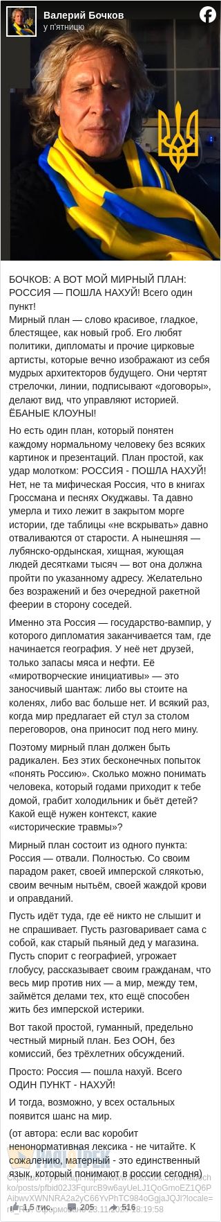 БОЧКОВ: А ВОТ МОЙ МИРНЫЙ ПЛАН: РОССИЯ — ПОШЛА НАХУЙ! Всего один пункт!