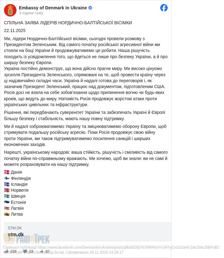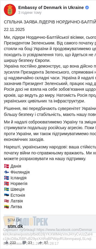 Дехто вважає, що ця Заява, оприлюднена Посольством Данії в Україні, знаменує початок створення реального Військового Блоку у Європі, який буде здатним протистояти РФ.