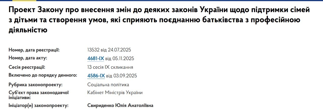 Документ розробило Міністерство соціальної політики, щоб підтримати сім’ї з дітьми та стимулювати народжуваність. Закон також має допомогти батькам поєднувати догляд за малюком із роботою.