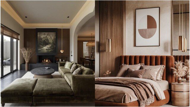 Відтінки обпаленої глини, карамелі, кориці — один із ключових напрямків у Європі. Вони добре поєднуються з натуральним деревом і текстилем.