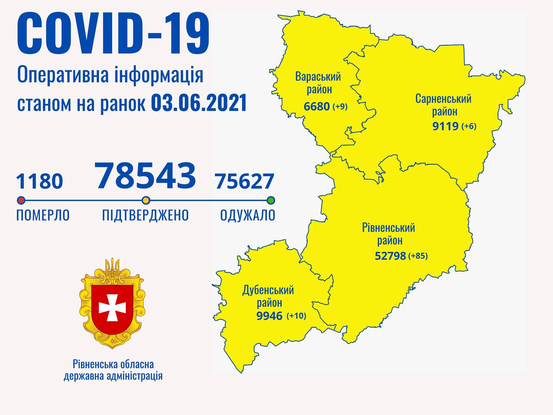 На Рівненщині ще 390 мешканців одужало від коронавірусу, нових випадків COVID-19 за добу в області – 110.