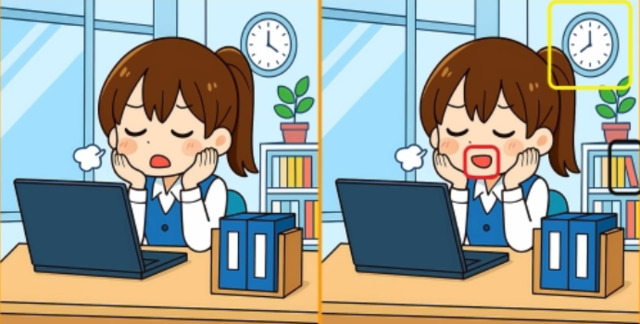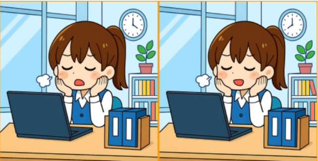 Уважно розгляньте дві картинки із жінкою, яка працює в офісі. На перший погляд, ці зображення абсолютно однакові, але будьте пильними.