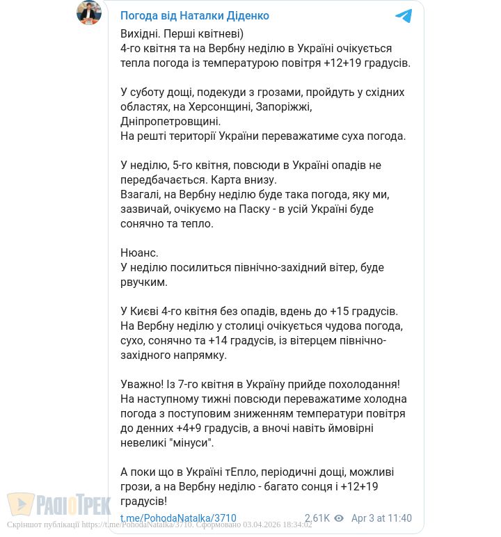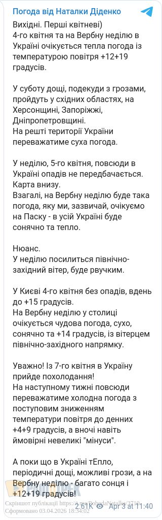 Разом з тим синоптик зауважила, що тепло триватиме не довго. Вже з 7 квітня в Україну прийде похолодання.