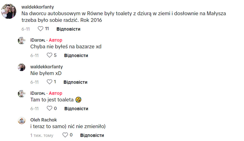 Згадали в коментарях і Рівне. Зокрема туалети на автовокзалі та на базарі. Йшлося про «дзюру в землі» у 2016 році. Доброзичливці відзначили, що з того часу нічого не змінилося.