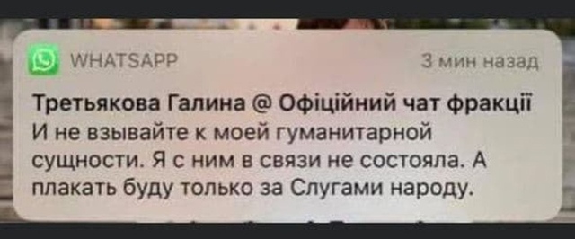 - Народну депутатку «Слуги народу" Тетяну Третьякову відсторонять від 5 сесійних засідань Ради через обурливе висловлювання щодо померлого нардепа Антона Полякова. Слова нардепки обурили депутатів від групи «За майбутнє», куди входив Поляков і не лише їх.
