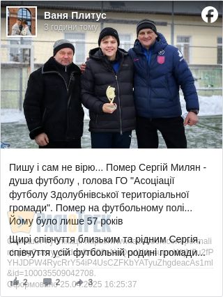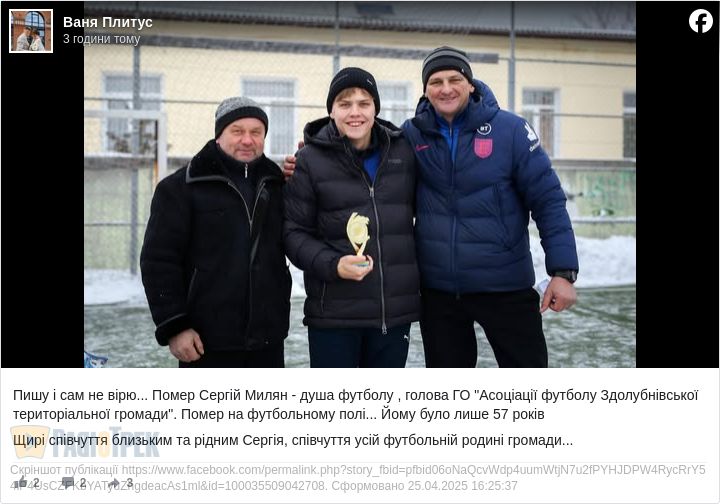 Пішов у засвіти арбітр РОАФ, голова ГО «Асоціації футболу Здолубнівської територіальної громади» та щирий вболівальник Сергій Милян.