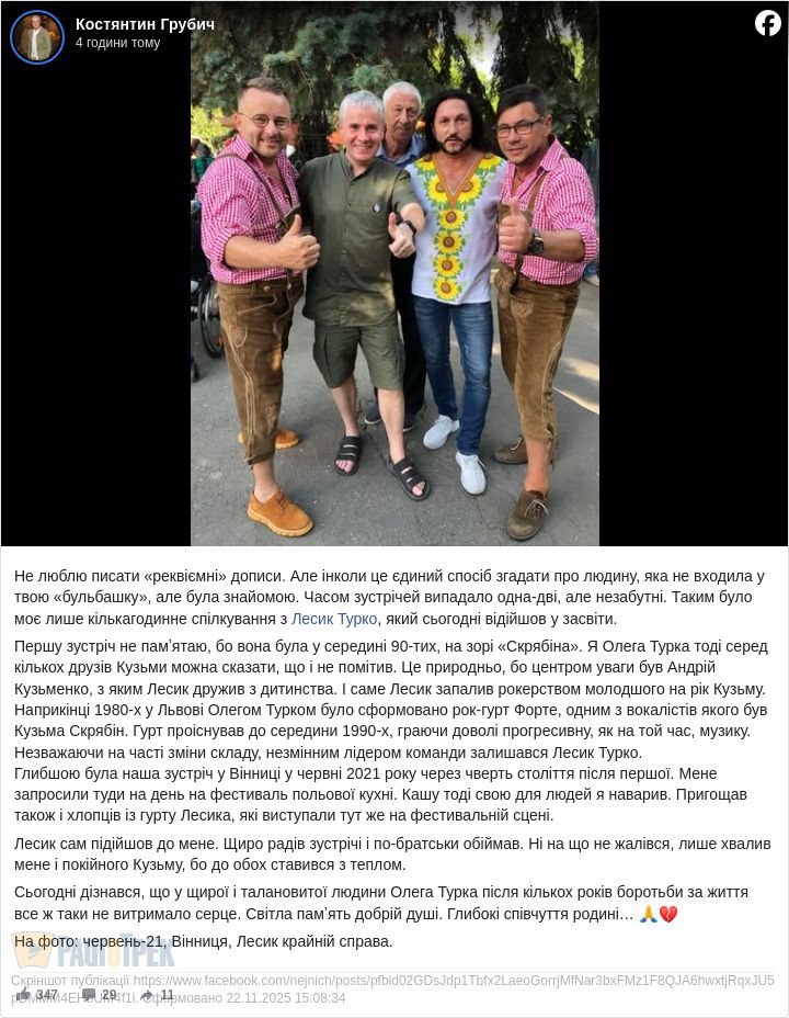 Помер музикант, співак і співзасновник гурту DZIDZO — Лесик Турко. Причину смерті музиканта ще не розкрили. У співака були проблеми із серцем.