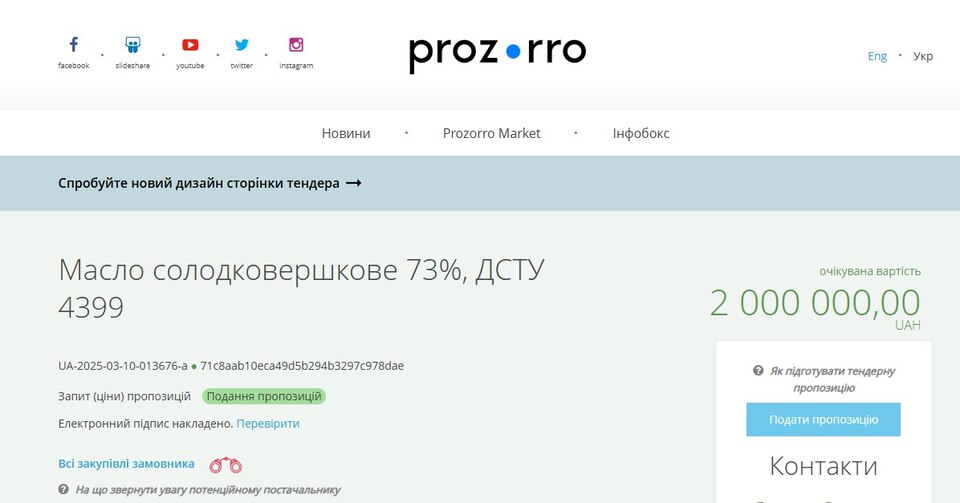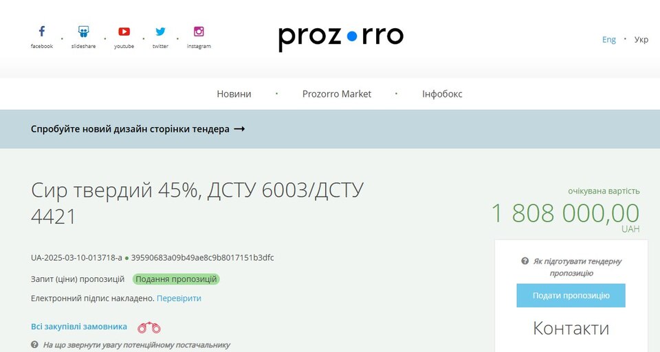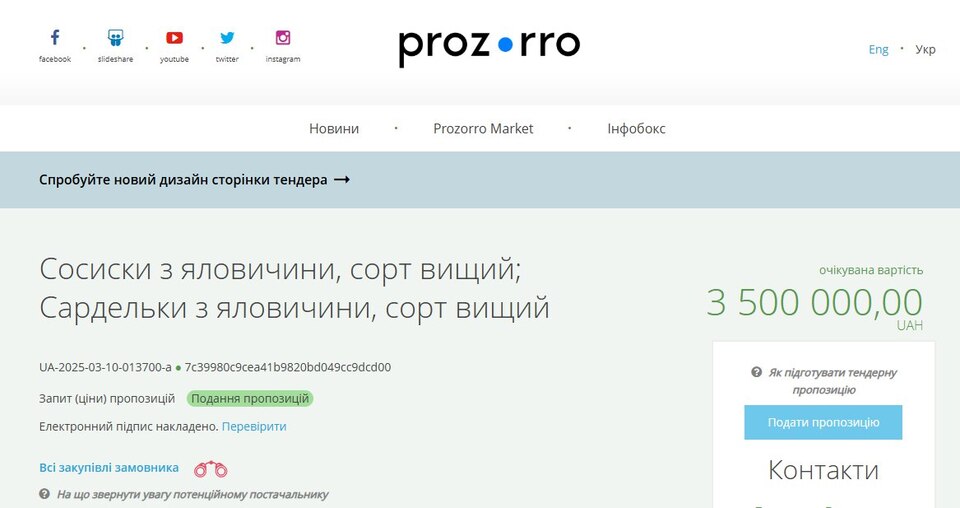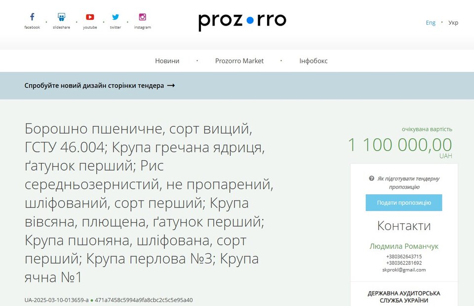 У документі йдеться, що медзаклад укладе угоду на послугу харчування на 2025 рік. Для пацієнтів планують закупити чай, сухофрукти, масло, сир, цукор, рибу, сосиски, курятину та крупи.