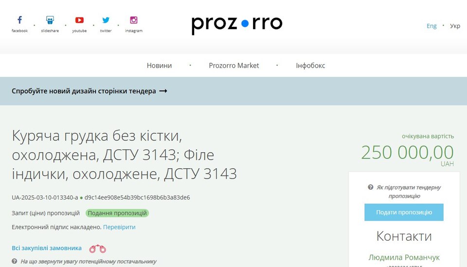 Пів тонни індички і тонна курятини: медзаклад у Рівному оголосив аукціон на закупівлю