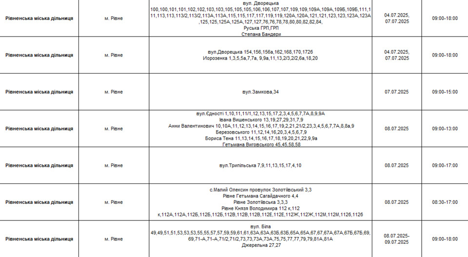 Повний графік планових ремонтних робіт можна побачити на сайті Рівнеобленерго у розділі «Споживачам».