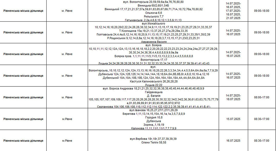 У зв’язку з плановими ремонтними роботами буде відсутнє електропостачання на частині вулиць Рівного. Світла не буде на таких вулицях: