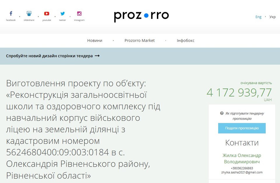 Понад 4 мільйони гривень витратять на проєктно-кошторисну документацію реконструкції військового ліцею на Рівненщині. Про це йдеться на сайті Прозорро.