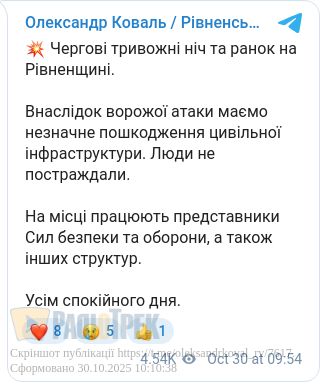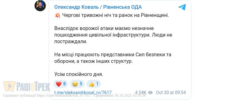 Ніч та ранок на Рівненщині минули тривожно — регіон зазнав чергової ворожої атаки.