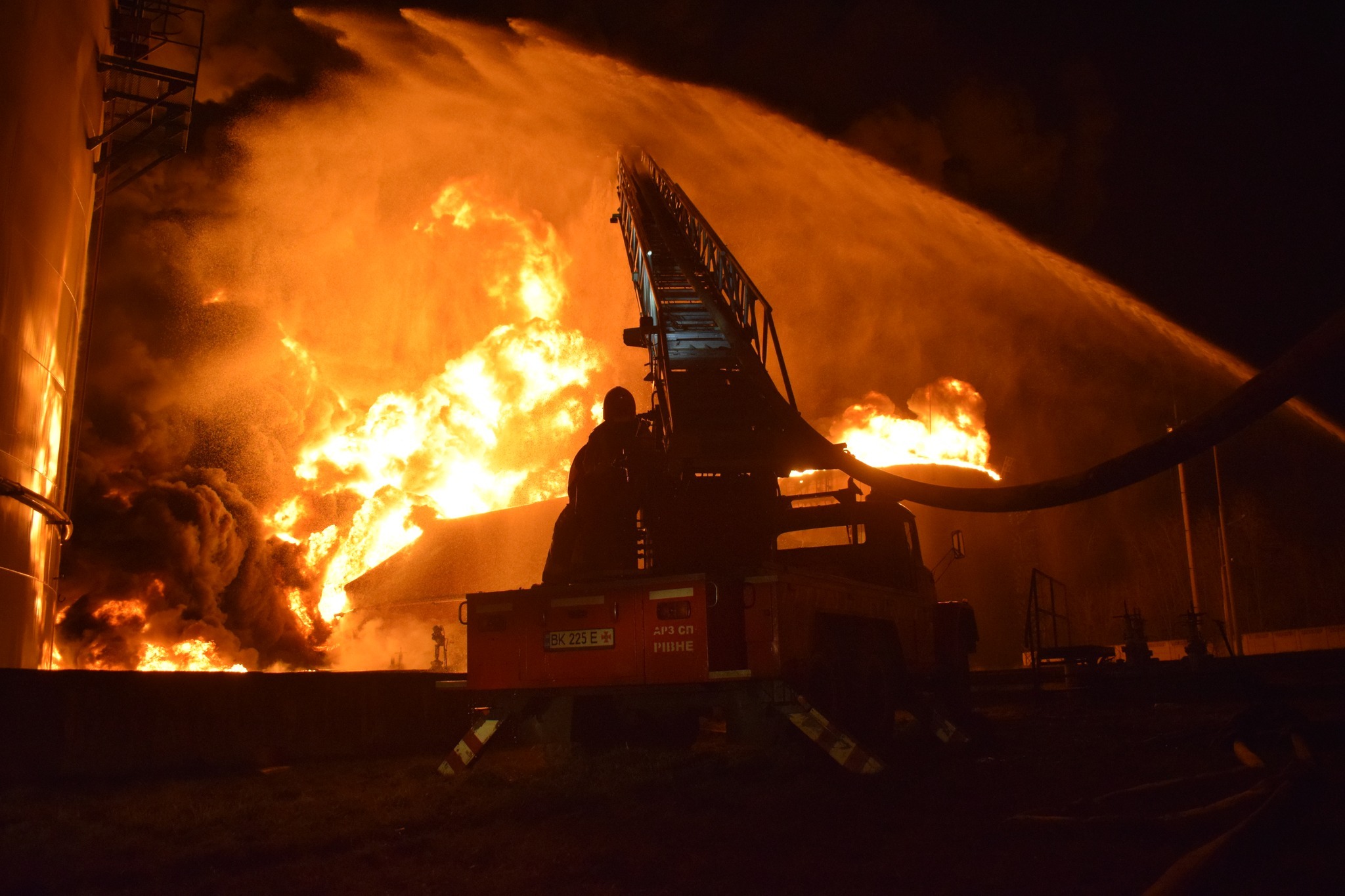 Понад пів доби пекла: пів сотні рятувальників Рівненщини досі гасять пожежу на нафтобазі (ФОТО)