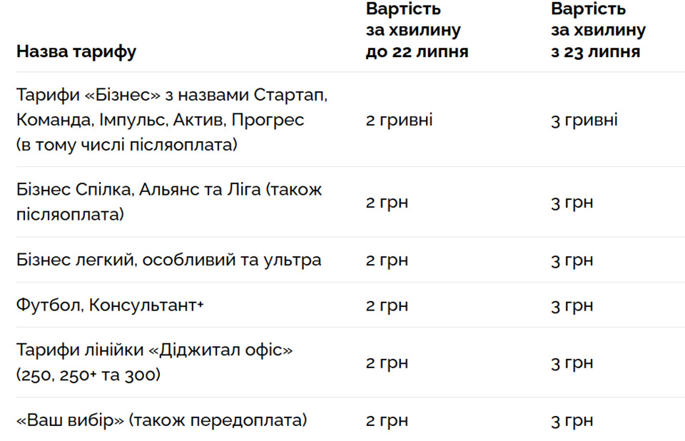 Це стосується багатьох тарифів: Бізнес, Діджитал офіс, Футбол, Ваш вибір тощо.