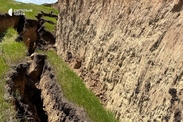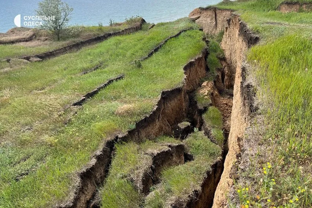 Експерт виявив нові тріщини поруч з наявними зсувами, які свідчать про подальші зсуви в найближчому майбутньому. За його словами, масштаби нового зсуву вражають, адже частина ґрунту опустилася майже до рівня моря.