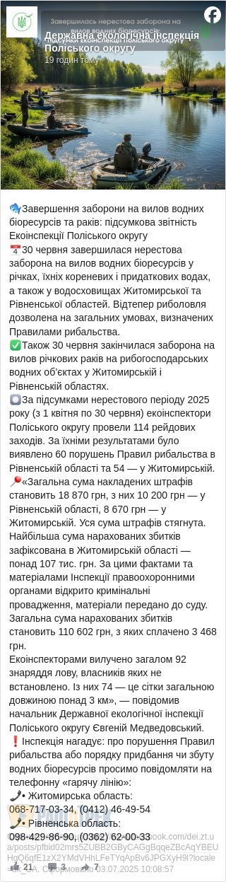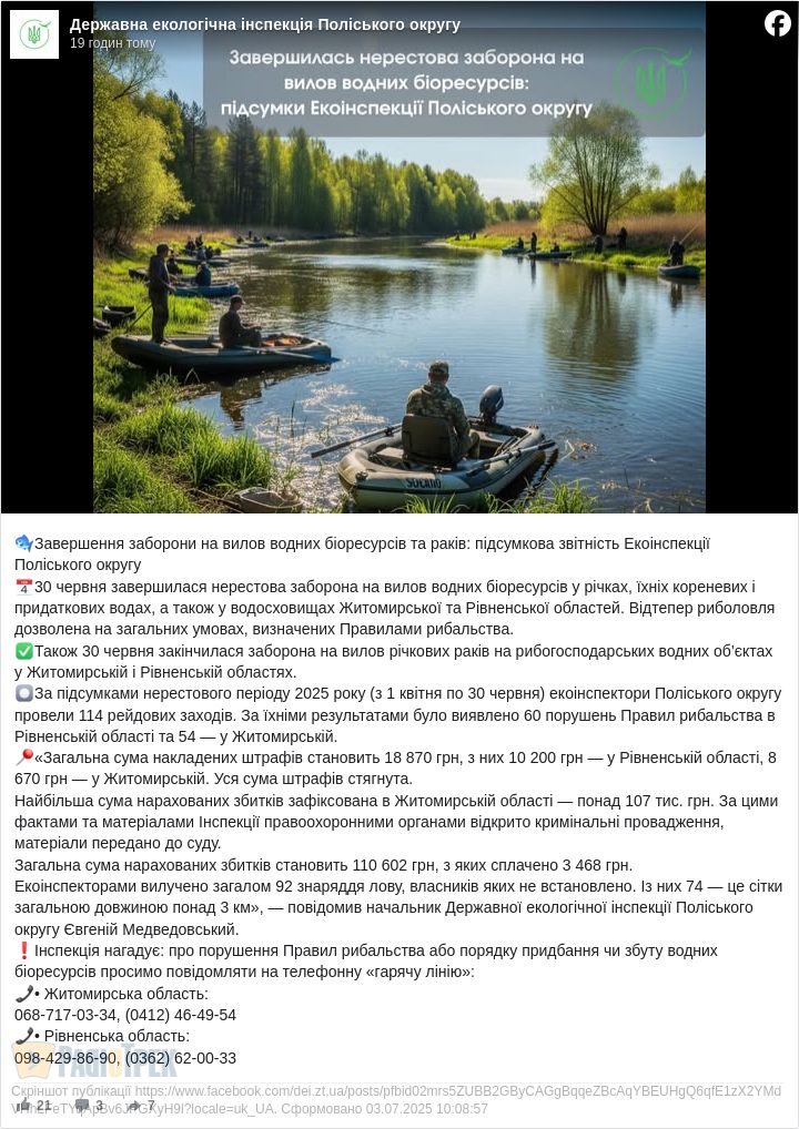 Порушень на понад 10 тисяч гривень виявили на Рівненщині під час заборони риболовлі