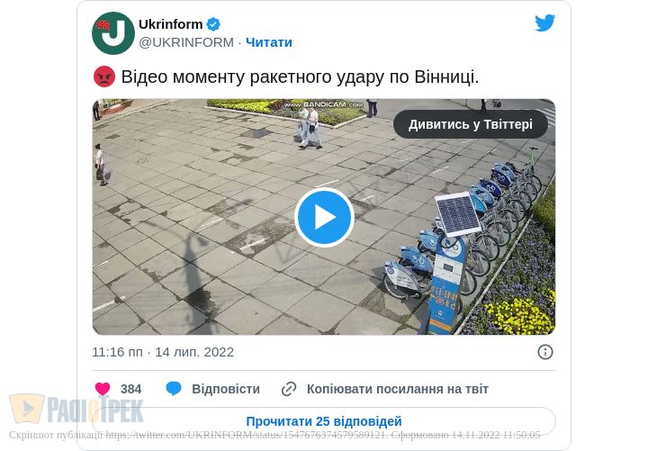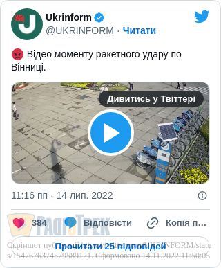Звернення з'явилося після ракетного удару, що його було завдано по Вінниці.